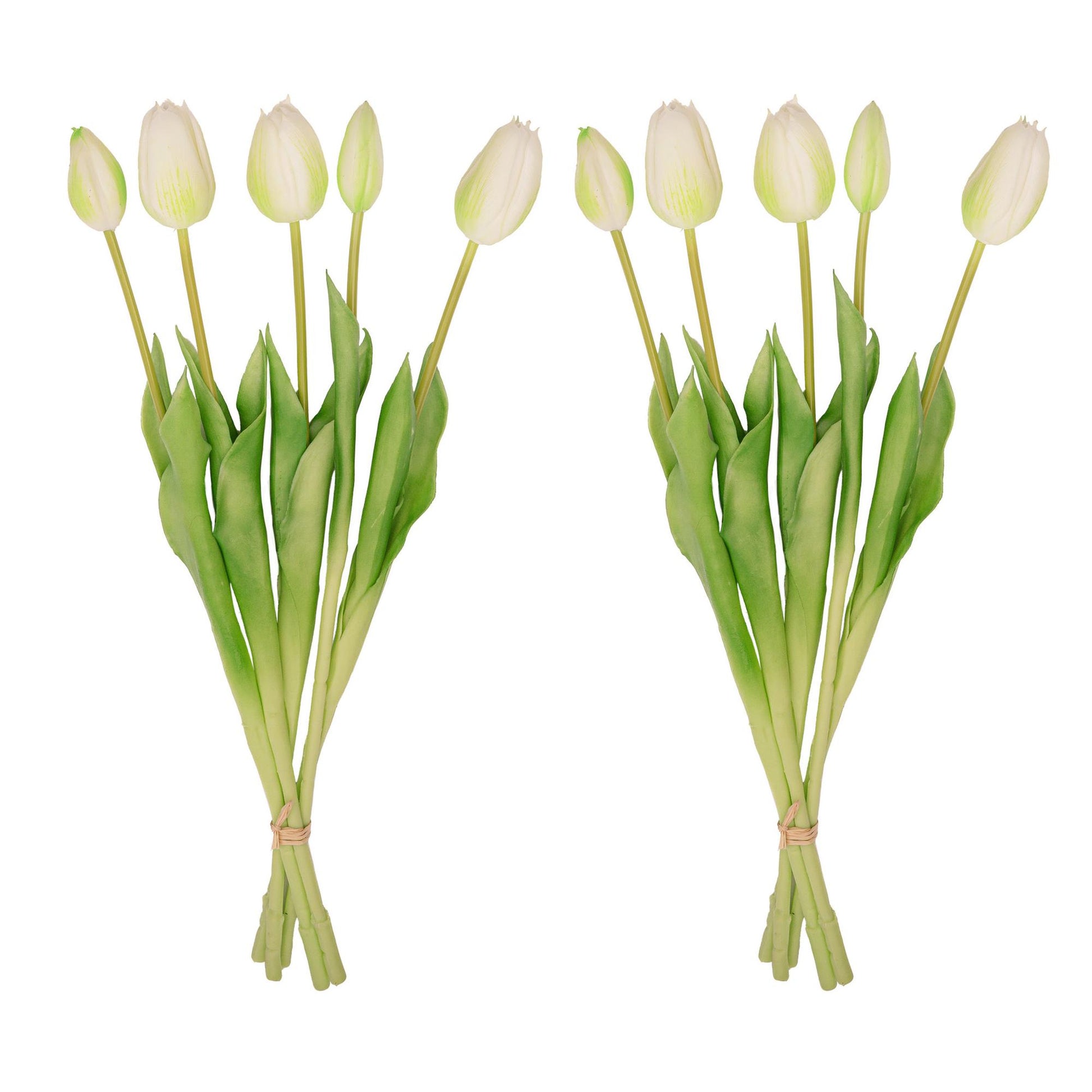 Tulpen boeket Wit/Groen - 10 stuks - 'Real Touch' Kunst tulpen - 42 cm (white/green)