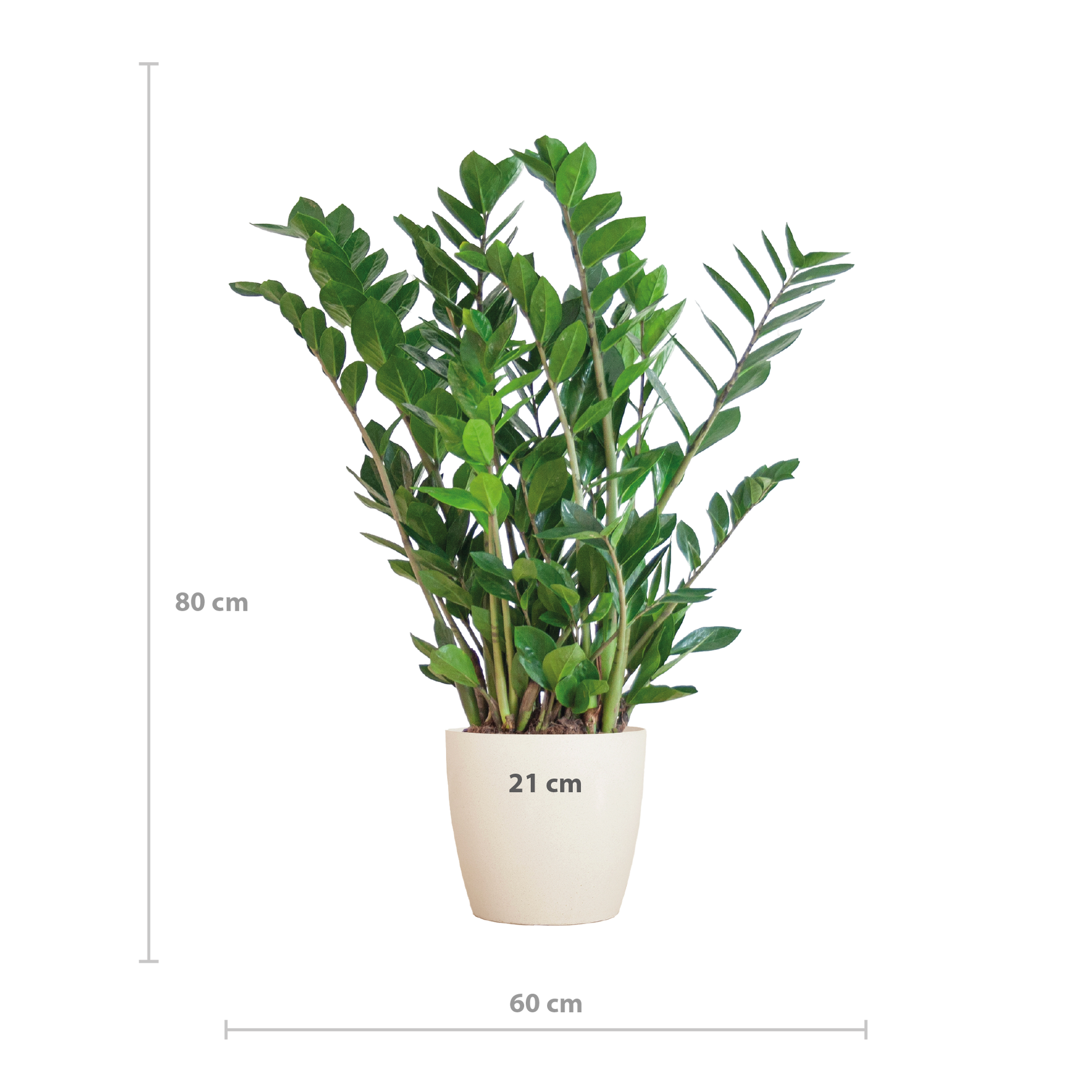 De Zamioculcas wordt geleverd in een duurzame Viber pot, gemaakt van bioplastic met olifantengras van Nederlandse bodem. De pot is biologisch afbreekbaar en heeft een natuurlijke, lichte krijtkleur die past in verschillende interieurs.